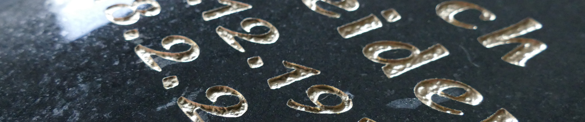 Eine Grabstein-Beschriftung wird entweder in den Stein graviert (hochwertige Sandstrahlgravur), geschlagen oder als Metallschriftzug aufgesetzt. Bei der ersten Variante erstellt der Steinmetz eine Sandstrahlgravur Ihrer Inschrift, die 2-3 mm tief in den Stein eingearbeitet und anschließend mit Ihrer Wunschfarbe ausgelegt wird.